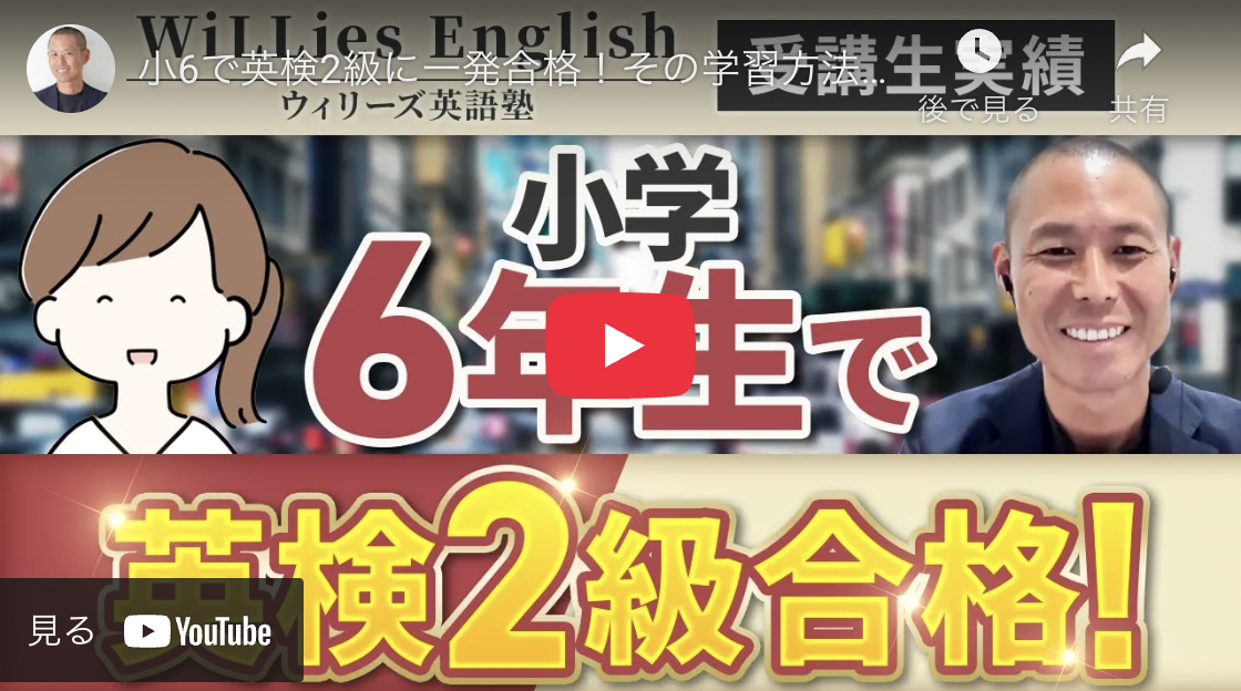 ※ 「英検準2級を目指す方の学習プランとウィリーズ英語塾活用方法」をご確認ください。英検2級を目指されている方は、必ずしも準2級を受験しないといけないわけではありません。しかし、急がば回れ。英検準2級の力が身についているか5〜6ヶ月で確認し、それから上記の学習方法を参考にしてみてください。