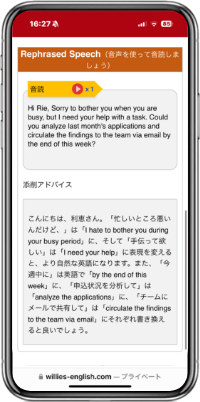 自分だけの口頭英作文教材で学習します仕事で会話した内容を教材にし、
