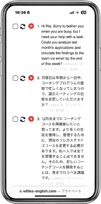 - 中上級者はオリジナルのYouTubeリストで週一回ディクテーションを行います。ごまかしできないリスニングトレーニングを行います