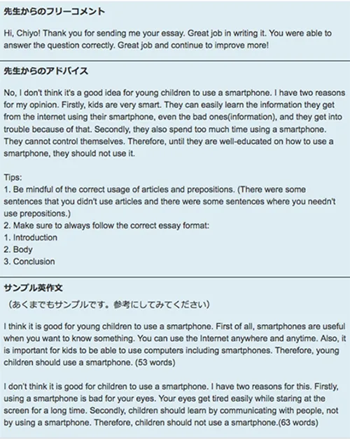 Point1文法添削だけでなく、的確なアドバイスまでしてくれます