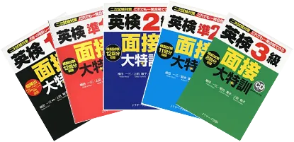 二次対策では「面接大特訓」シリーズを使った対策を行います。本番さながらの面接試験を行う他、各レベルで頻出の分野別の実践訓練を行います。その他、インタビューで便利で効果的な例文を学びます。